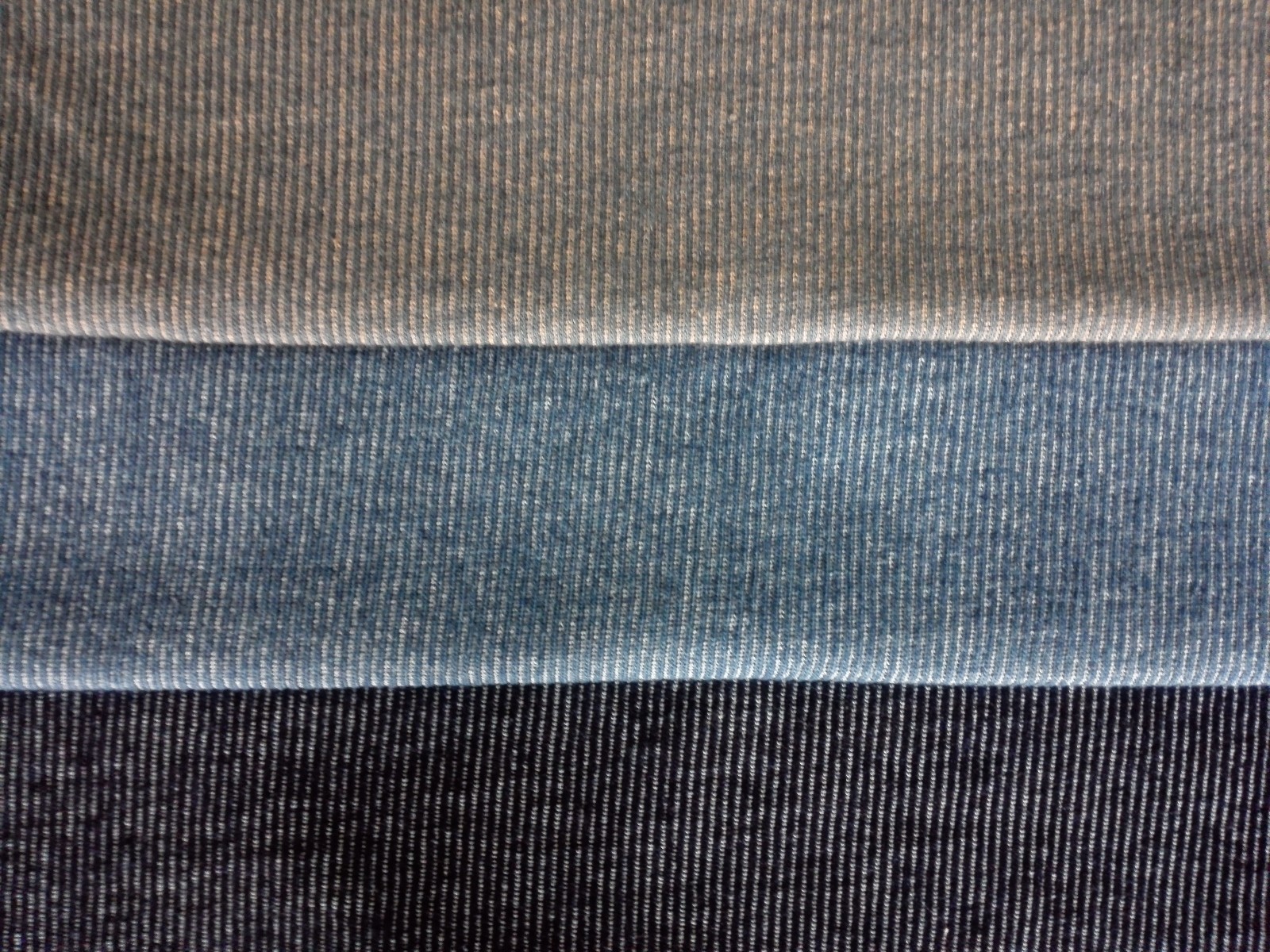 Item(FABRIC description): | 16s/1 indigo+16s/1 greige vertical stripe terry |